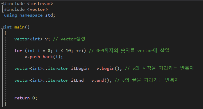 itEnd가 가리키는 값은 vector가 끝났음을 알리는 부분을 가리키고 있었습니다.