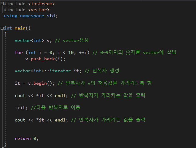 또한 iterator는 vector뿐만 아니라 다른 모든 STL에도 사용할 수 있습니다.